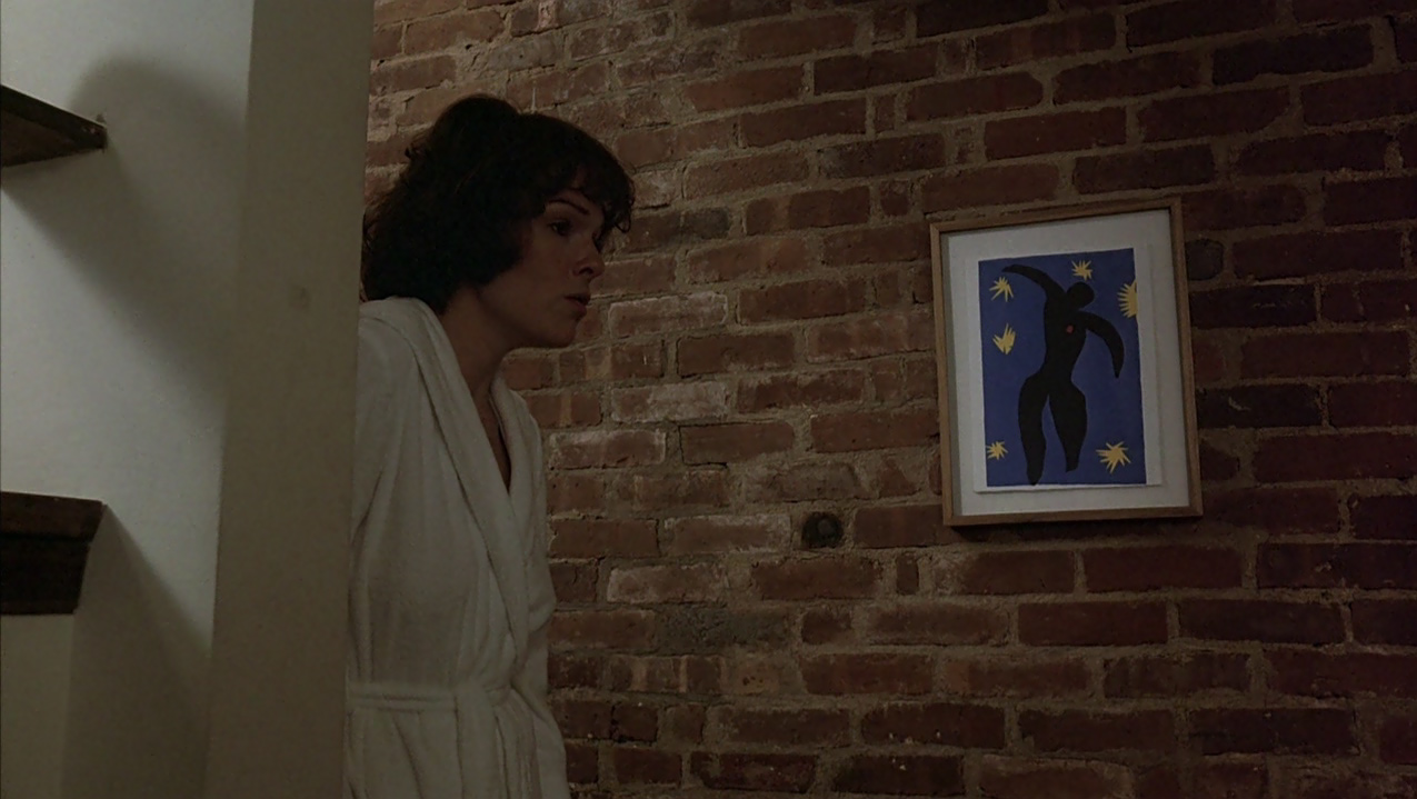 The apartment has three levels. They pass through so quickly I doubt anyone has managed to screencap it. The front door is to the left and this little room is, I believe, the kitchenette. You go up the stairs to the livingroom area with the bathroom off it (again, I think) and then up another staircase to the loft/ bedroom. Narrow, claustrophobic, only relieved by the high ceiling, and so totally New York.